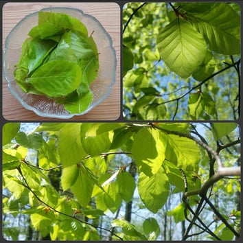 Die Blätter der Rotbuche (Fagus sylvatica) schmecken nur gleich nach dem Austrieb, wenn sie noch hellgrün und zart sind. Sie sind leicht säuerlich, frisch vom Baum genascht eine leckere